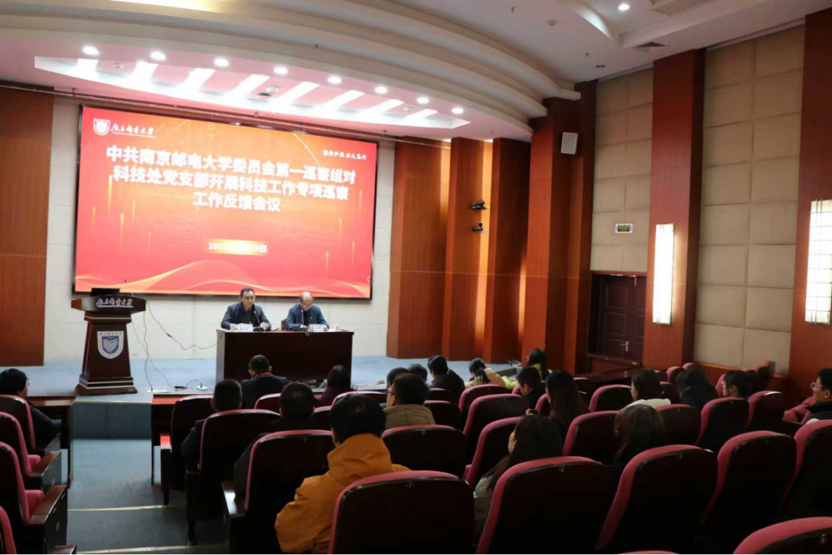 根据校党委巡察工作安排,2025年12月26日,校党委第一巡察组向科技处党支部反馈巡察情况。校党委第一巡察组组长王友国代表巡察组向科技处党支部进行了反馈,科技处党支部书记蔡志匡主持会议并作表态发言。巡察组副组长朱卫未、张洪波及巡察组其他成员,纪检监察机构、巡察办工作人员,科技处领导班子、科职干部、教职工代表参加会议。
